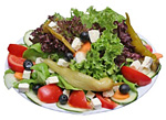 knackige, grüne Salate mit Tomaten, Gurken, Mais, Hühnerfleisch, Ei, mit Essig und Öl oder Joghurtsauce |