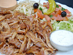 Gyros, Souvlaki, Bifteki, Leber, Reis, Pommes, Tzatziki und gem. Salat |